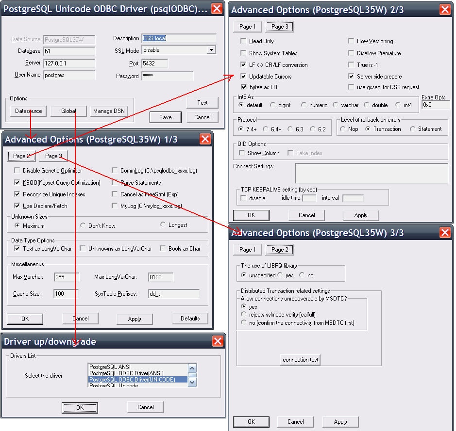 Detalji o svim parametrima Postgres ODBC drajvera nalaze se na ovoj adresi: http://psqlodbc.projects.pgfoundry.org/docs/config.html